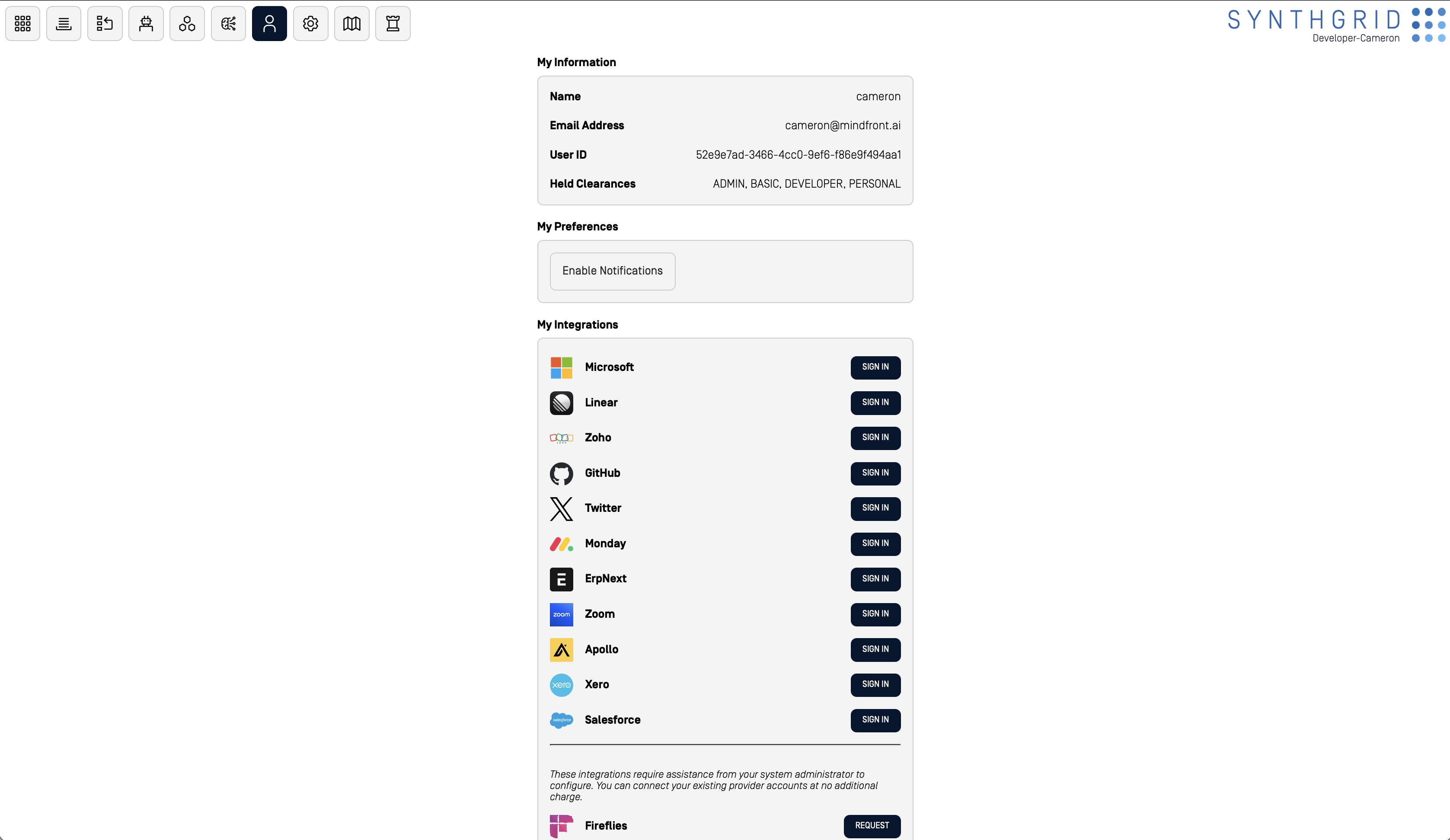 SynthGrid is deployed in production environments across manufacturing, professional services, and operations-heavy industries. The platform connects to systems including Salesforce, ERPNext, Zoho, and custom in-house databases. Deployment timelines are typically under one week due to fully isolated per-tenant infrastructure. SynthGrid Fiber is publicly documented and extensible at no additional cost.